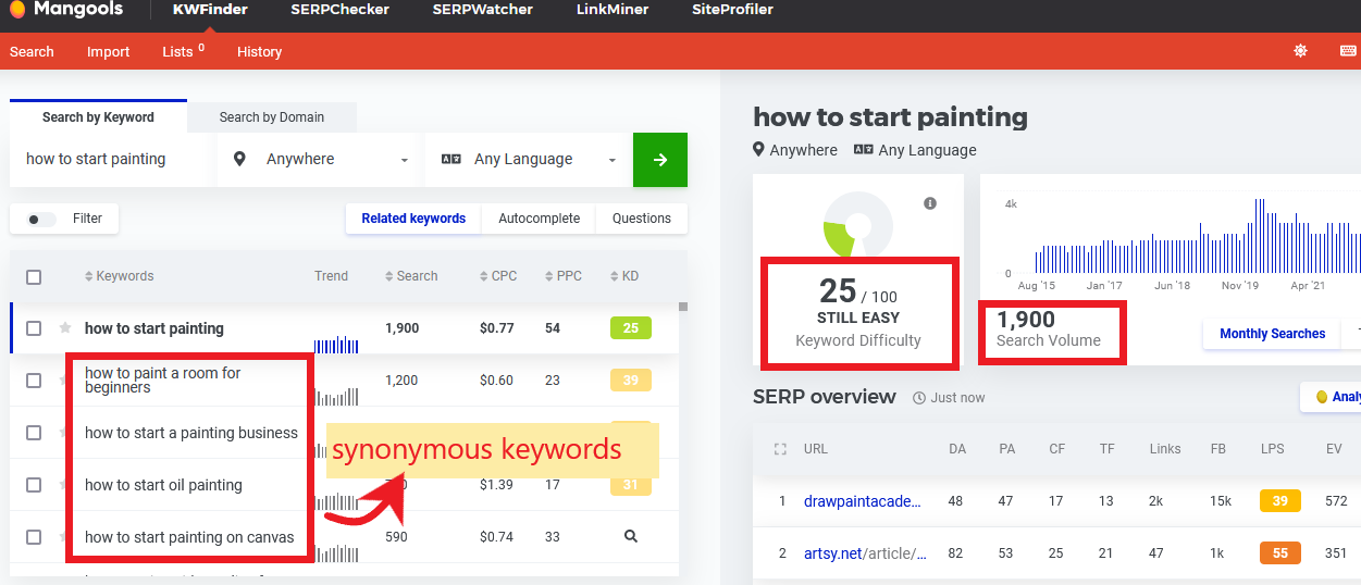 Explore other suggestions provided by the SEO tools through their database of searches, including synonymous keywords to embed in your content as variations of your chosen focus keyword.