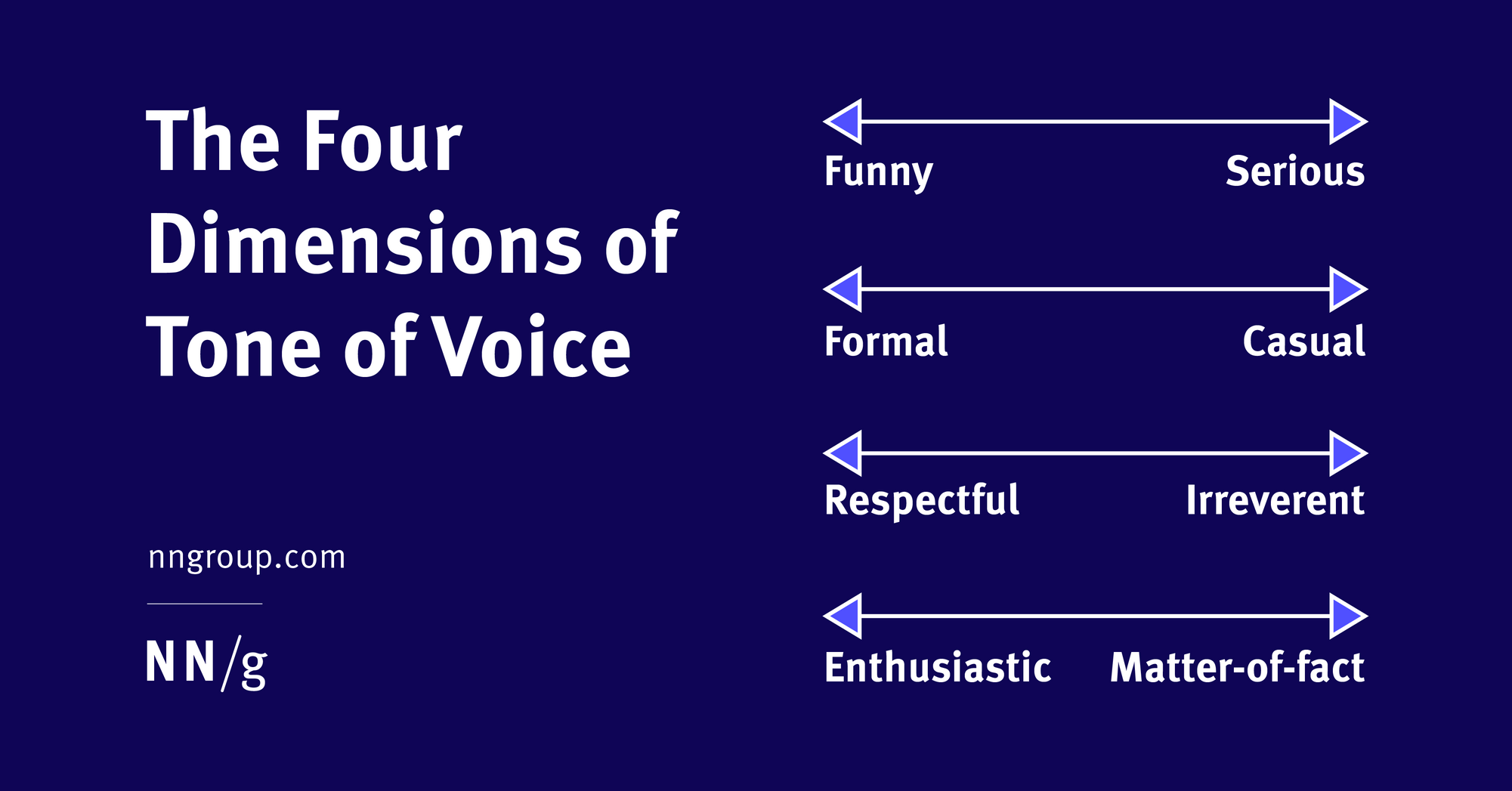 Nielsen Norman Group has identified four dimensions of TOV to pick from: