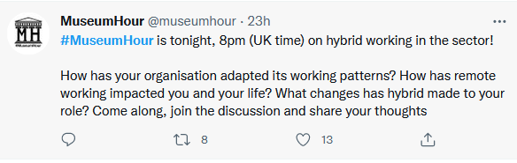 #MuseumHour is a monthly Twitter chat about all things museums. Experts in the sector, cultural heritage professionals and museumgoers share their ideas and personal experiences on several topics, from art and conservation to accessibility and hybrid work.